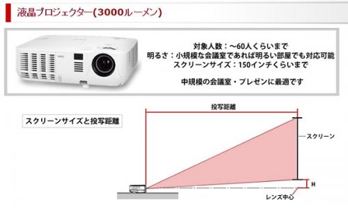 ◆室内で投写するにも十分な高輝度3.000ルーメン